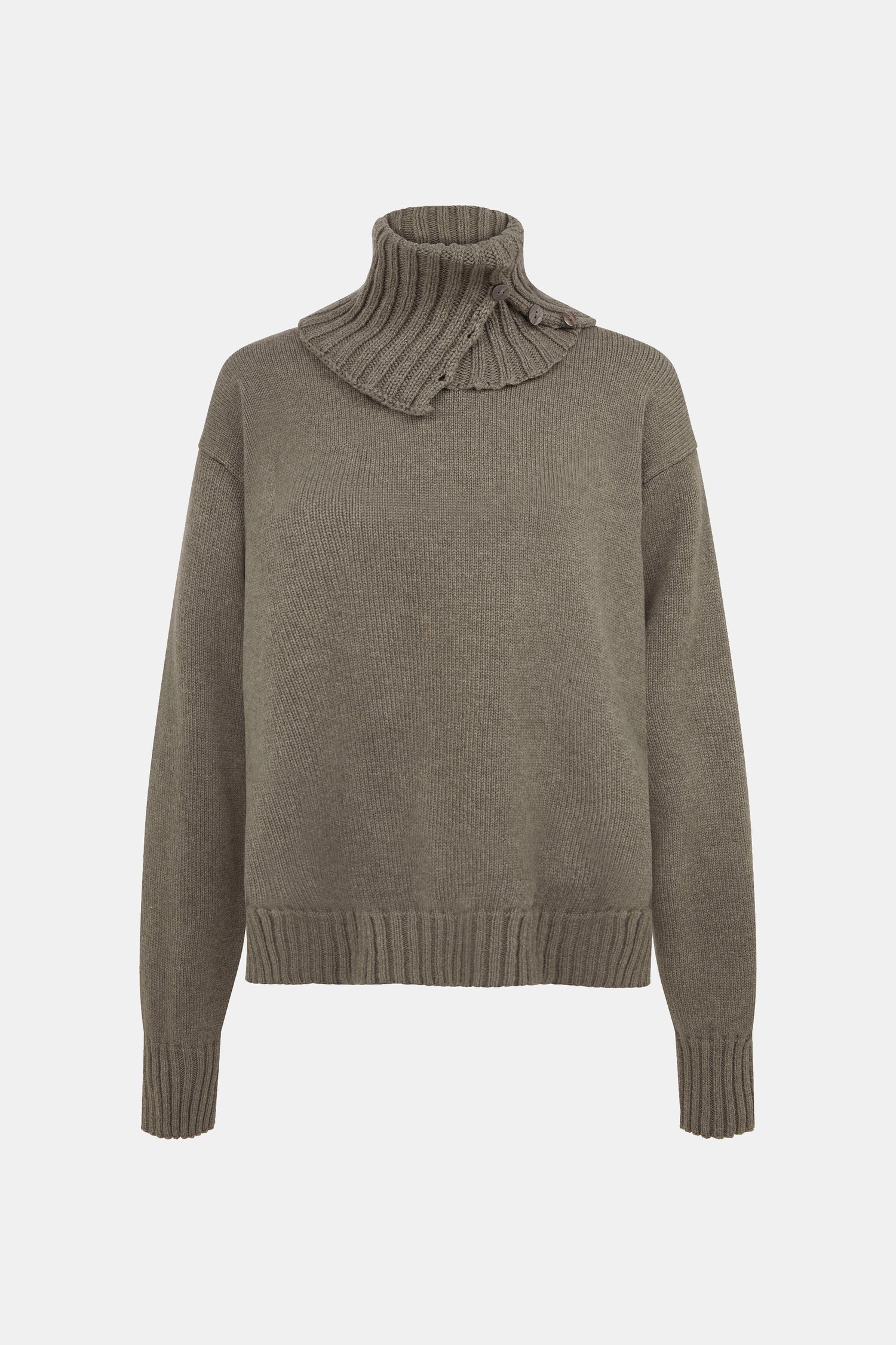 Borgø is made up of two pieces, one part a relaxed fit classic crew, the second a high neck with button detail. Worn together they will keep you warm in the coldest of months. Styled separately the high neck provides a perfect layer for midseason styling.