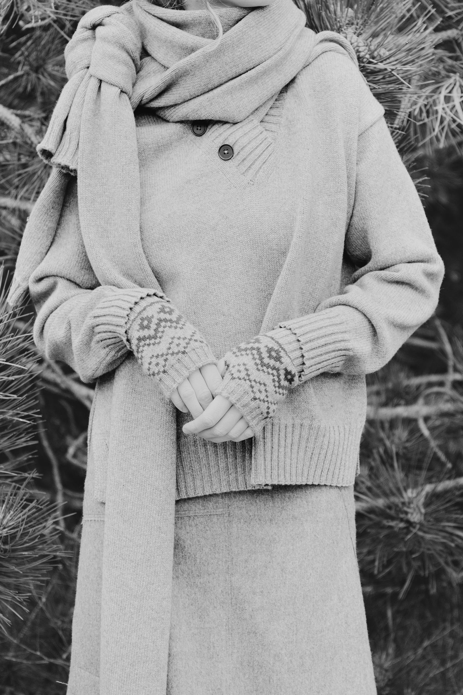 Lyø hand warmers are made from leftover yarn from each season's production, including faulty panels that can be unravelled and reused. Knitted in a 2-colour Scandinavian pattern they are stylish yet perfect for keeping your hands warm whilst your fingers are free to keep busy.